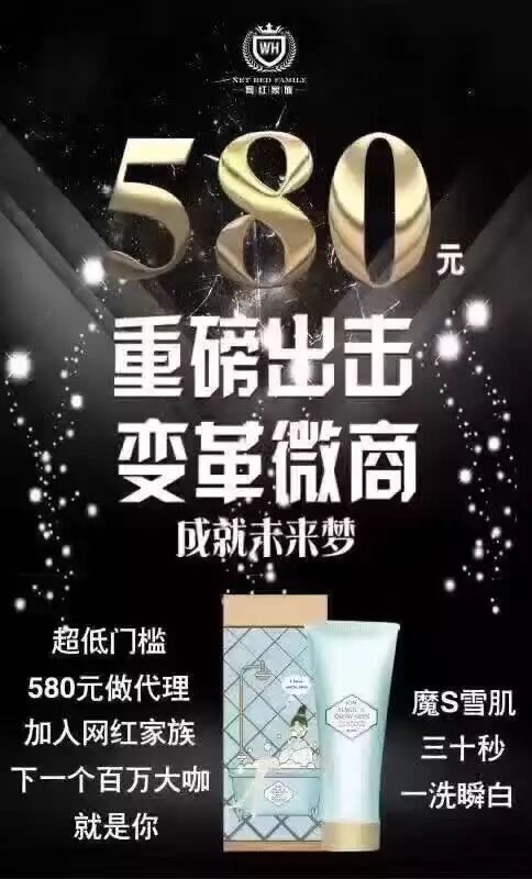 580元做代理,超低门槛,却能跟随专业微商团队,帮扶你快速成功,没有卖不出去的产品,只有不会做销售的人,今天你是小白,明天就可能是微商大咖。