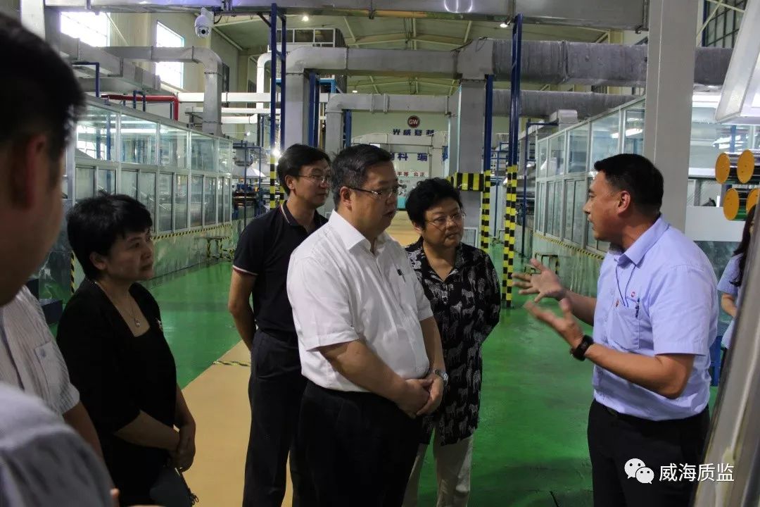 8月2日,国家市场监督管理总局计量司司长谢军一行到威海,就军民融合发展和国家碳纤维产业计量检测中心建设工作进行调研,并召开座谈会。省质监局副局长贾峰、威海市副市长张伟、威海临港区管委会主任于文江、威海市质监局局长彭霞等有关领导陪同调研。