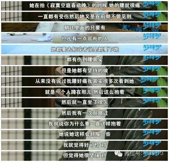 刘恺威也说过,“有段时间她腰不太好,因为参加节目受的伤,当时天气特别热,但她一直坚持,加上人物戏份很重,还常被折磨,很辛苦,我都看着心疼”。
