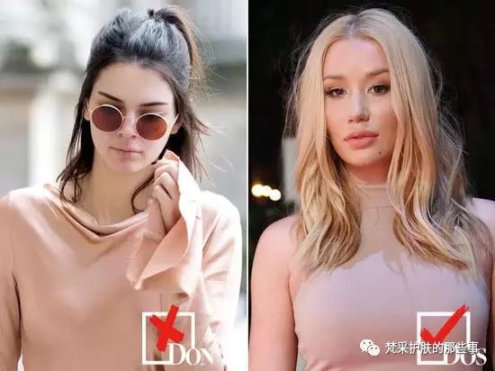 裸色的颜色本身比较素净,与我们的肤色又比较接近,所以穿裸色系衣服的时候搭配的唇色是很重要的。肯豆如此有颜任性的妹子没涂唇膏都看上去无精打采,像是生病了一样。所以,要像这样搭一个“略带色差的”裸色才够亮眼哦!