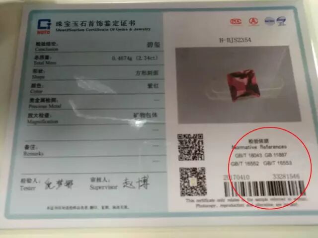❖证书上的小细节:国家标准号