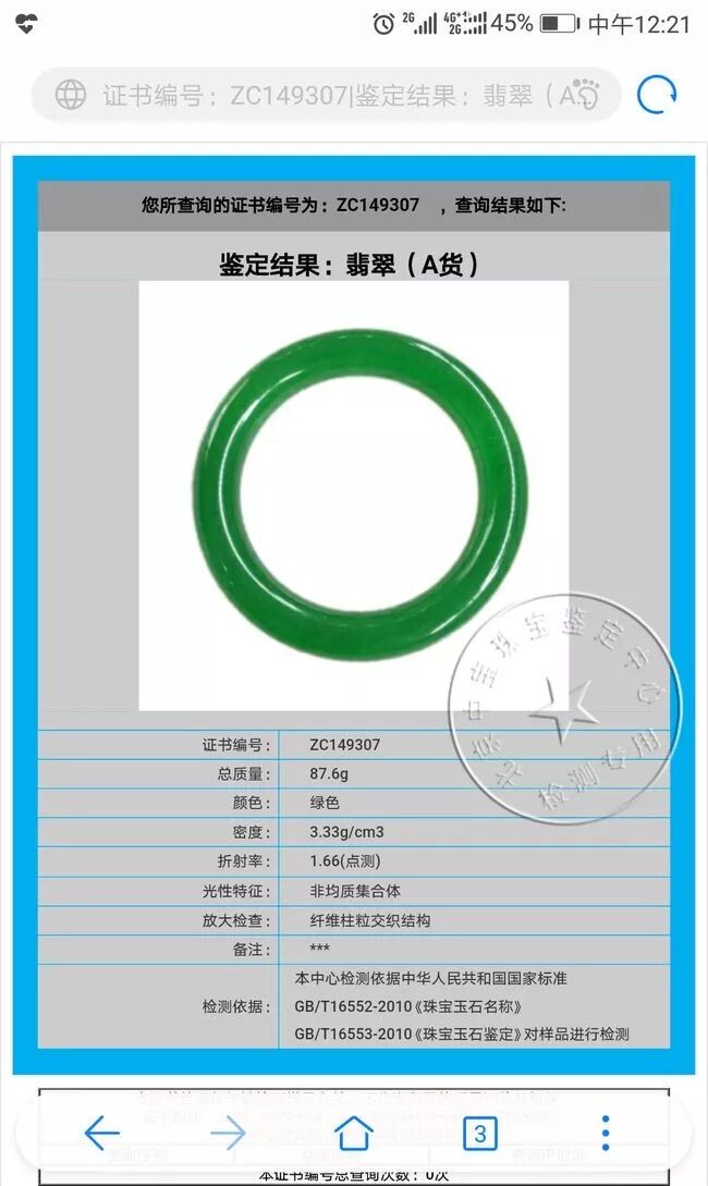 若网址出现错误,无法正常链接或是查询不到相应信息,则该鉴定证书可能为假的证书。