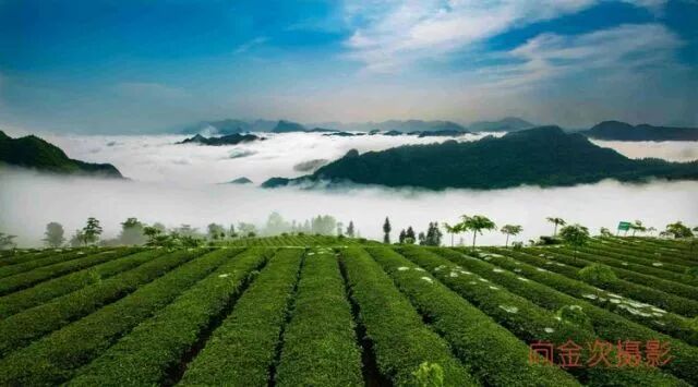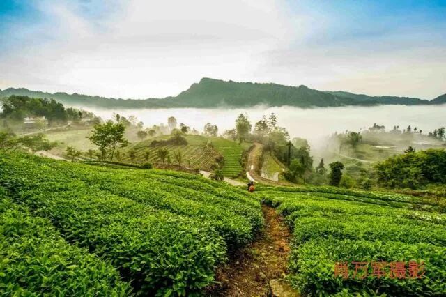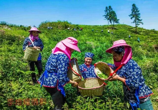 清晨,茶叶上的露珠被惊醒,采茶女明媚的笑妩媚了整片茶园。