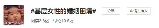 与赵薇的“现代女性画像”受到一致点赞几乎同时,另一则热搜话题“当下基层女性的婚姻困境”,也收获了近4亿的关注度。