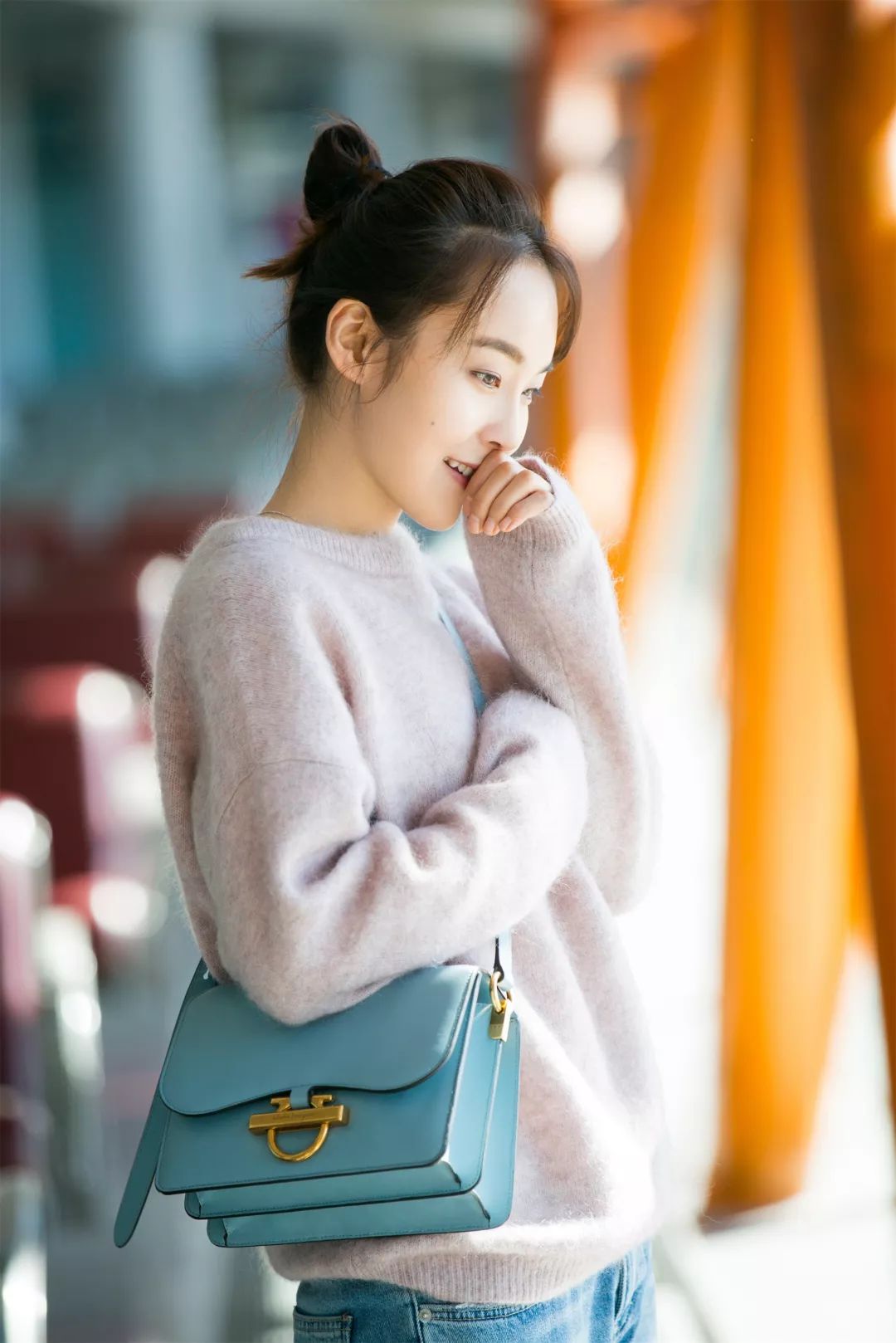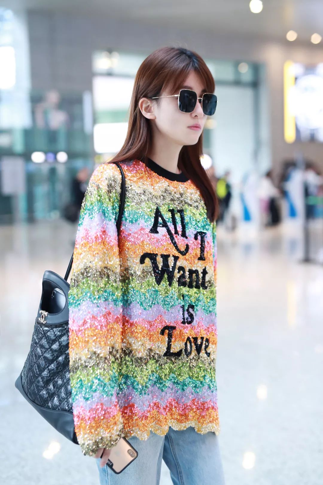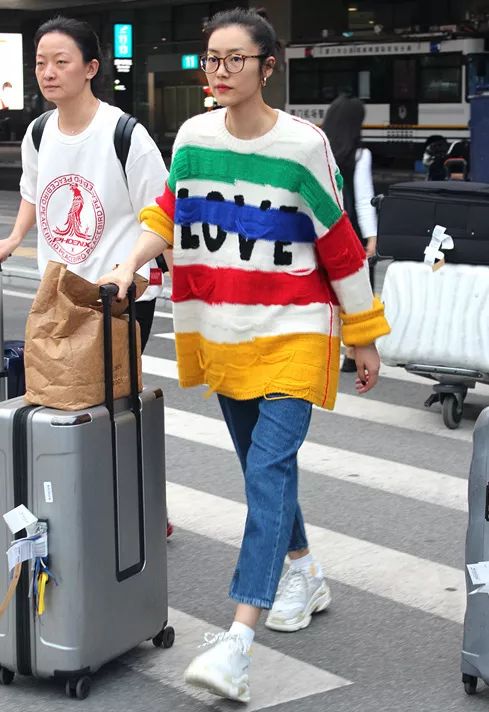 相比格纹浮夸大表姐、碎花民族风大表姐和彩虹大表姐,感觉还是牛仔裤+纯色毛衣的简约风格她上身更好看。