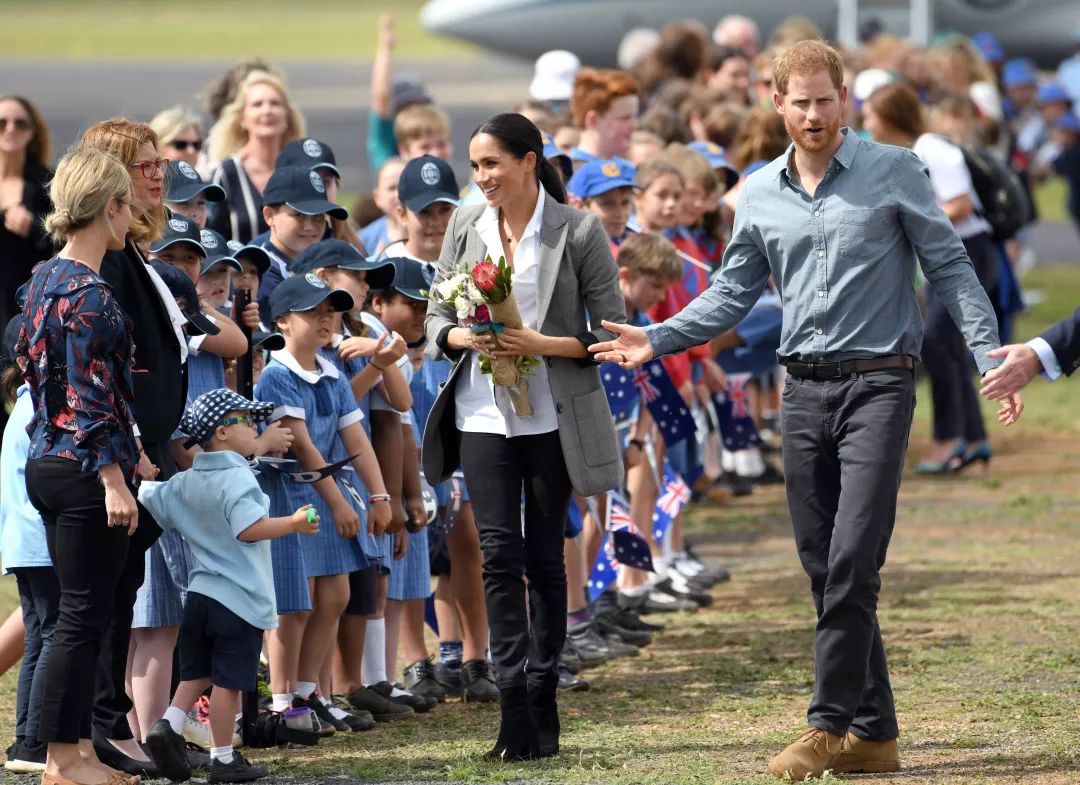例如隔壁怀了孕的梅根王妃,最近访澳时,在正式场合也是相似的穿搭,只不过把里面的T恤换成了更正式的衬衫。