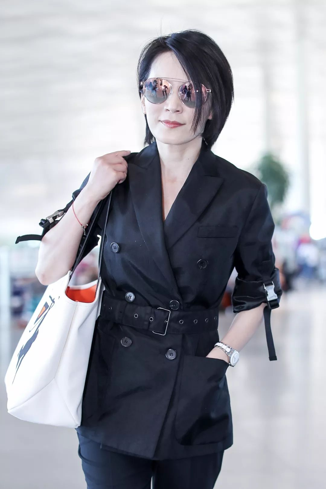 俞飞鸿用西装搭配了牛仔裤,是可以直接复制的经典通勤穿搭。