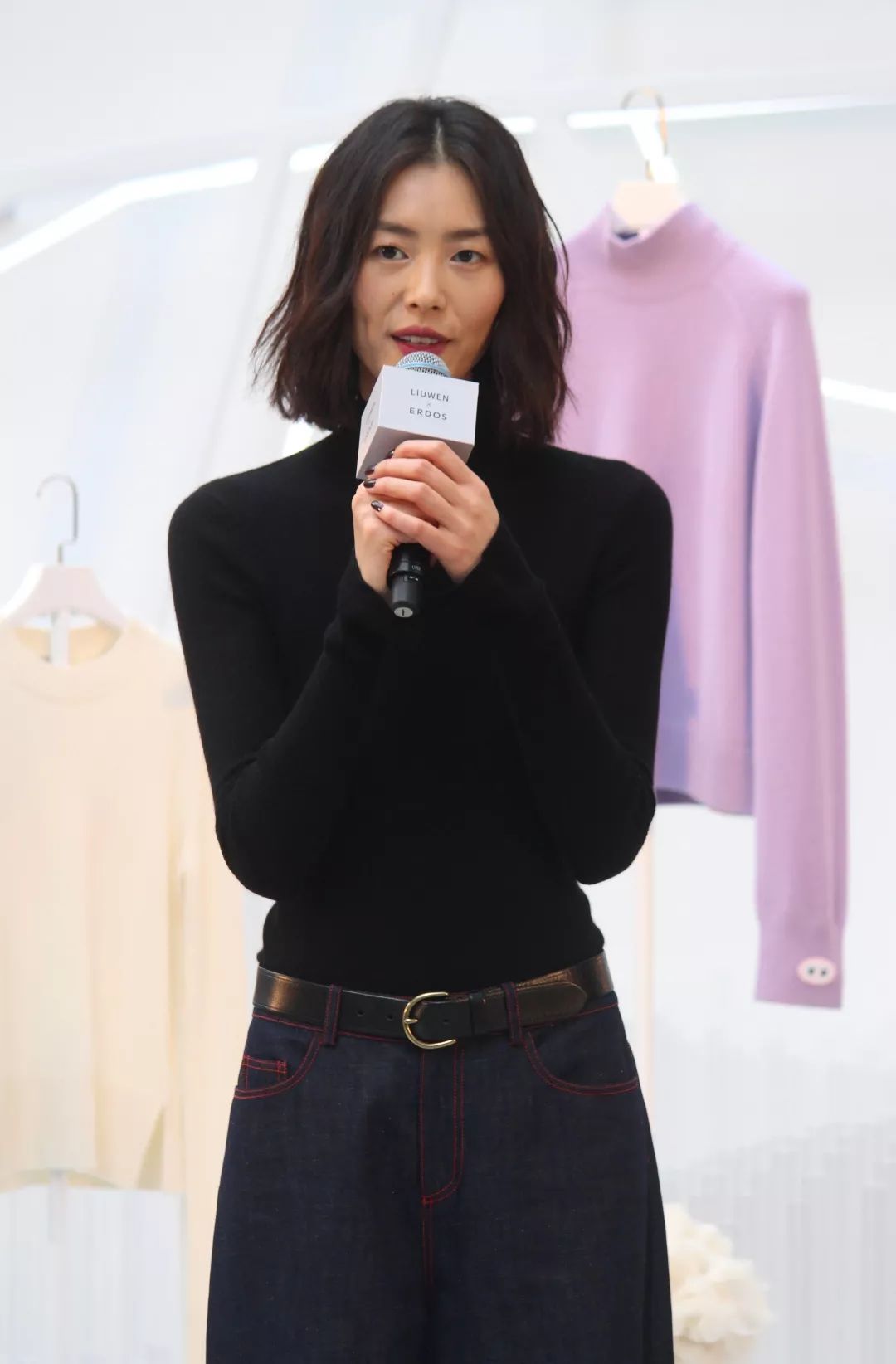 注意,刘雯喜爱把毛衣塞低腰牛仔裤里了,个子矮的姑娘就不要学了,选一条高腰牛仔裤,腿才能看起来更长。