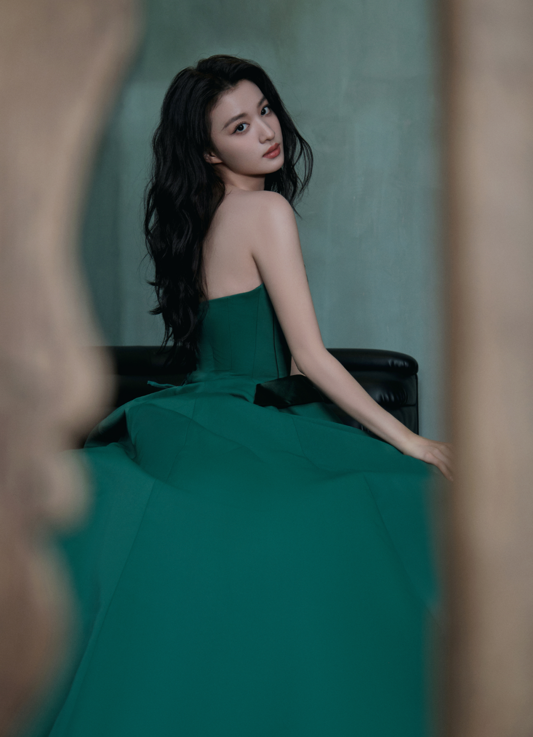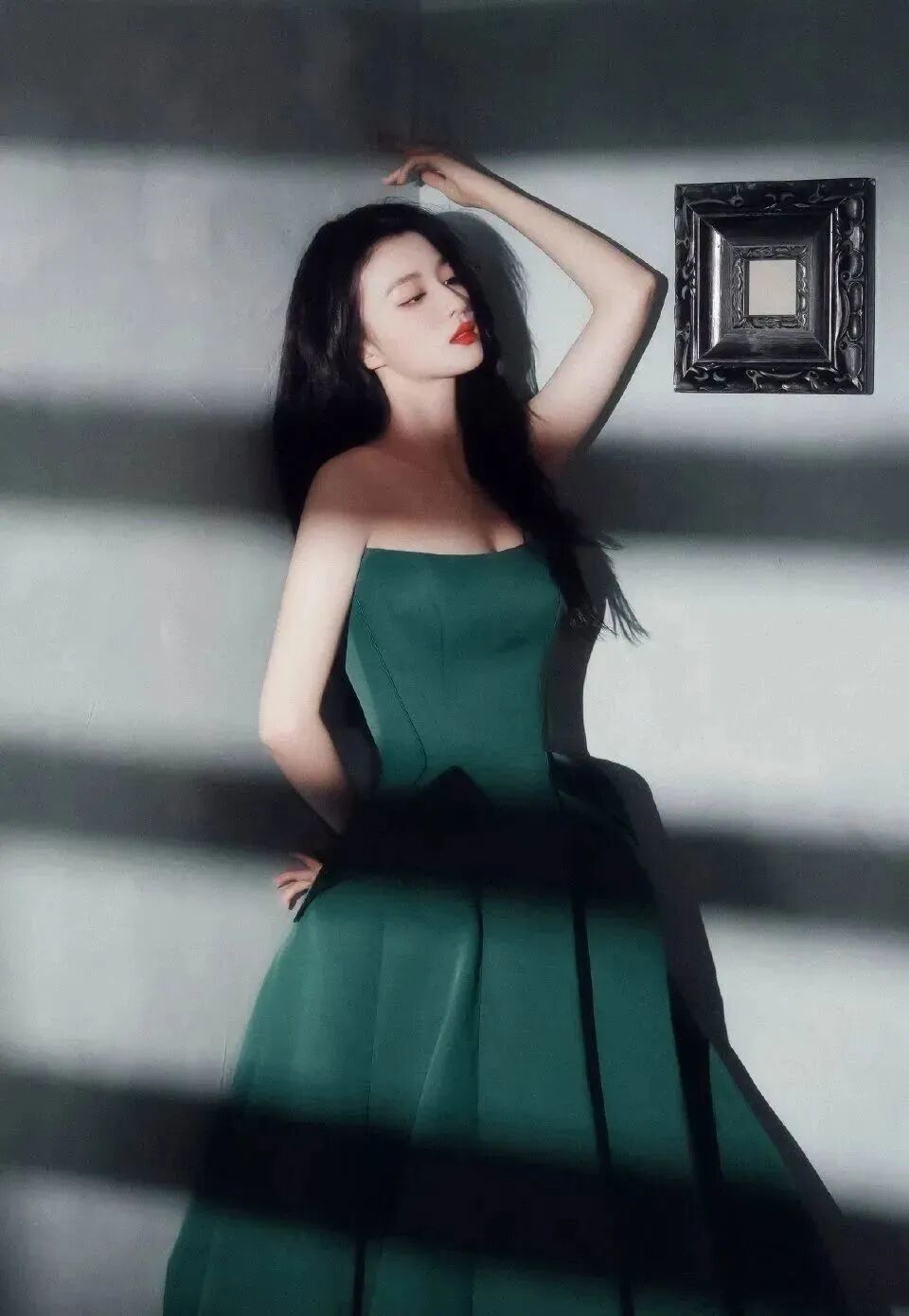 年仅24岁就已经有了大青衣的气质,一袭素雅古典的墨绿色长裙和脖颈上简洁的黑金项链让王楚然有种中世纪油画中的美。