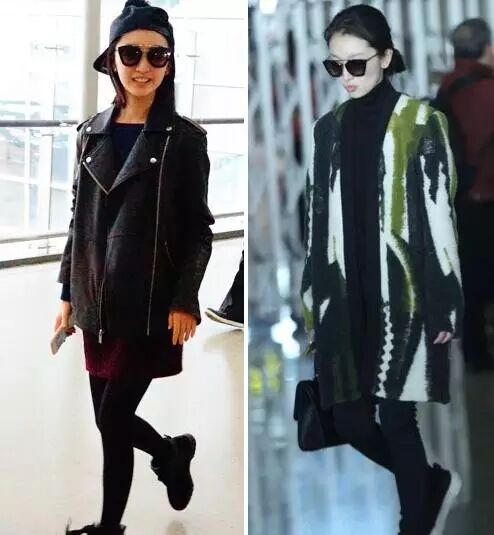 累赘的打扮更可能显矮,也由于妹子足够瘦,所以用简单的紧身裤搭配短上衣和厚底的松糕鞋是周冬雨最常见的打扮。