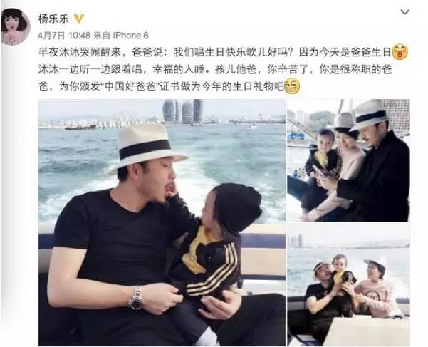 4月7日是汪涵的42岁生日,杨乐乐这天在微博上晒出了一家三口的照片,祝孩子爸爸生日快乐。