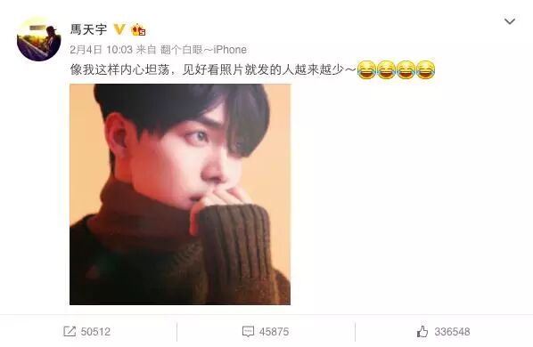 偶像明星是需要保持维系,这是大家都知道的事儿。但马天宇却不在乎这些,从来不藏着掖着,微博上自黑犯二停不下来。