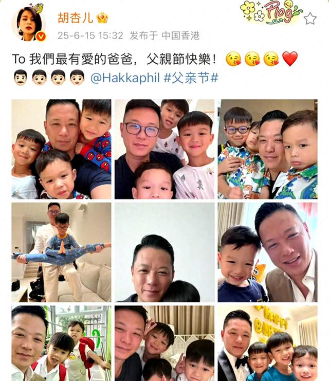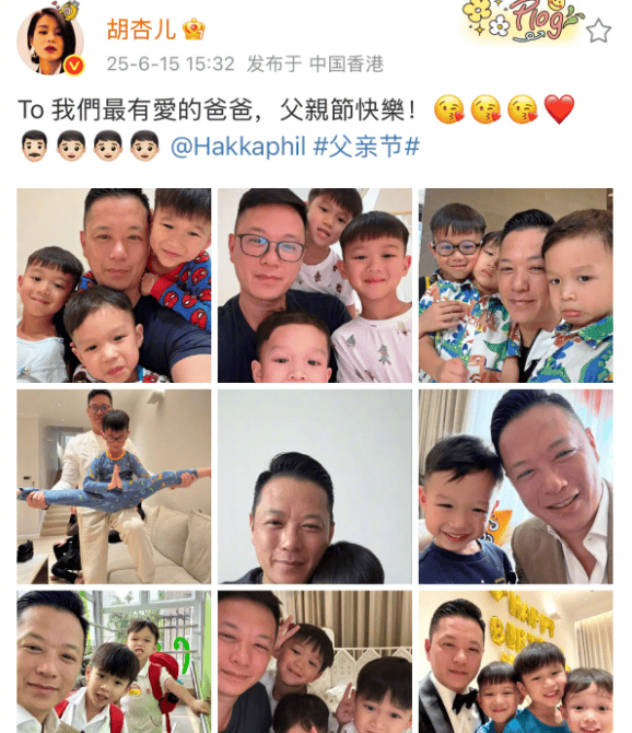 2024年6月,景德镇,一家大排档。网友偶遇胡杏儿,左手无名指上空空如也。港媒立刻发稿,“胡杏儿脱戒,婚姻亮红灯”。半年多夫妻未同框,社交平台零互动。有人说,婚姻已名存实亡;有人说,豪门果然难进;还有人说,三个孩子也留不住男人的心。可父亲节那天,胡杏儿突然出手。她没有写长文,也没有开澄清会,更没有回击质疑。她只是在社交平台晒出一张全家福:李承德单手抱小儿子,双胞胎哥哥依偎在爸爸腿边,四个人穿着同款亲子装,对着镜头笑得灿烂。配文只有两个字:“Super Dad”。照片里李承德的婚戒清晰可见,三兄弟粘在爸爸身边,一张合影,胜过万语千言。