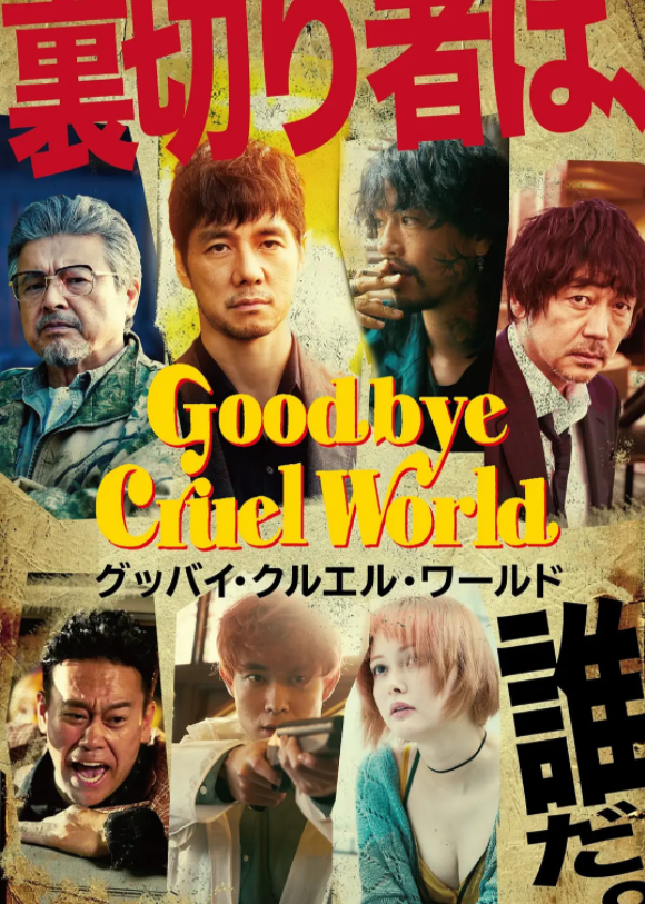 《再见,残酷的世界》讲述了由西岛秀俊、斋藤工、玉城tina 、宫川大辅 、三浦友和饰演的角色所组成的强盗团体,专做抢劫在情人旅馆进行洗钱交易的黑社会组织的“黑吃黑”生意。