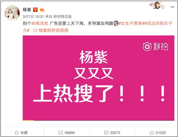 我还以为杨紫代言了什么运动品牌,但是...万万没想到,居然是高洁丝37女生节的广告?Nani?这卫生巾很有想法!