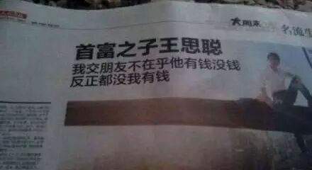 万达集团董事长王健林的独子王思聪,同时也是北京普思投资有限公司董事长、IG电子竞技俱乐部创始人、万达集团董事,靠着不可一世的赚钱能力,在网络走红。