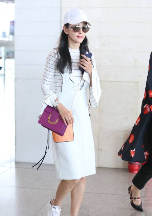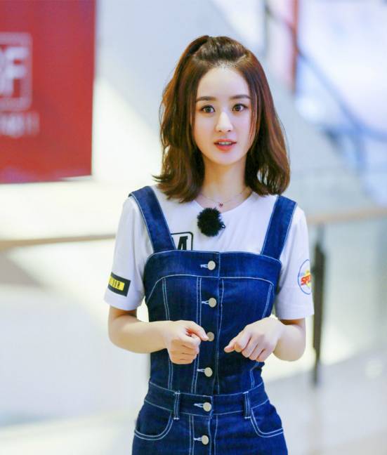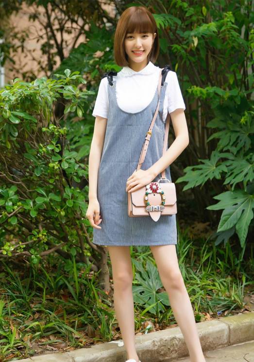 李冰冰身着背带裙
