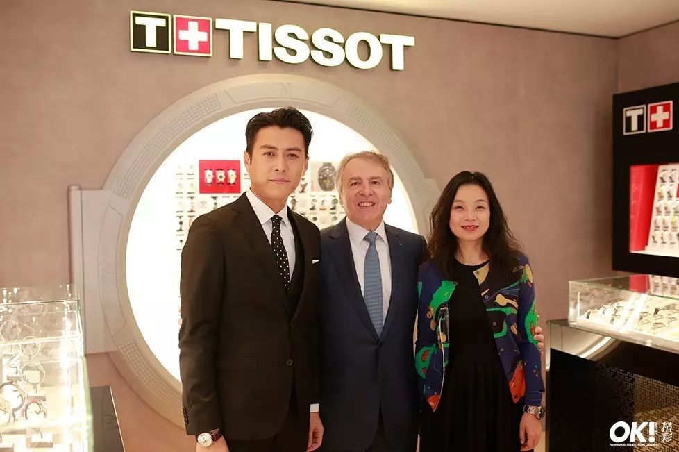 ▲靳东与天梭表全球总裁弗François Thiébaud先生、天梭表中国区副总裁王颖女士合影