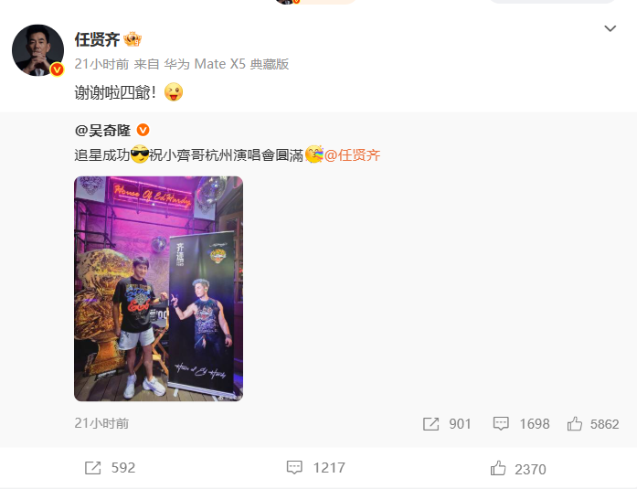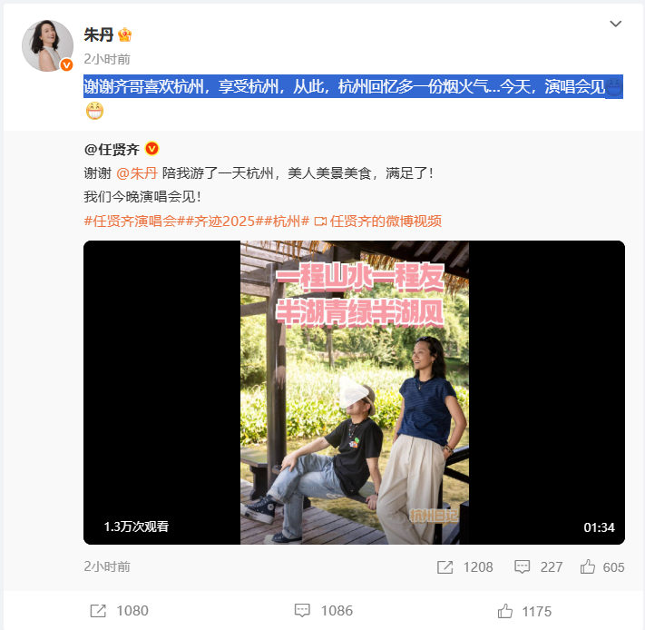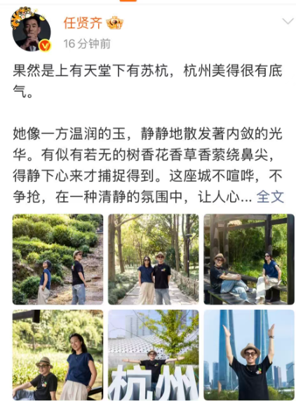 任贤齐是有多爱杭州!连发5条微博,大赞杭州人美景美,太爱了!