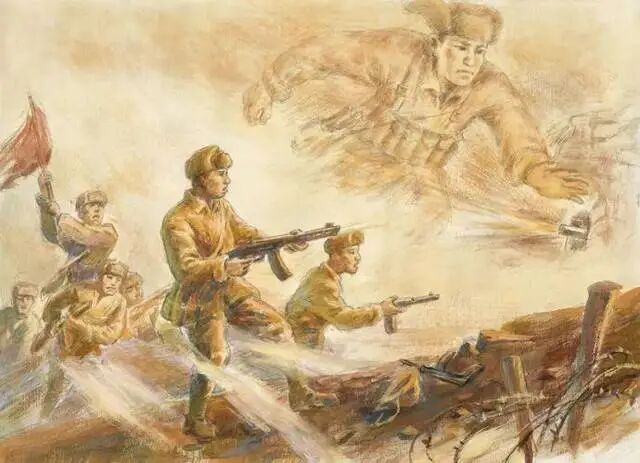 黄继光,四川省中江县人。1931年生,1951年3月参加中国人民志愿军。1952年10月19日那个弹雨纷飞的夜晚,黄继光跟随队伍在上甘岭进行反击战。当时,如果天亮前攻不下敌阵地,一夜的战果将付诸东流。在紧要关头,黄继光挺身而出,与连里两名通讯员一起请战。不久,两名战友相继中弹倒下,黄继光也负了伤。当他爬到离敌人中心火力点十余米时,身上已没有任何武器,但他顽强爬向火力点,张开双臂,用身体挡住了敌人的枪口,黄继光用年轻的生命为部队开辟了胜利前进的道路。战后,黄继光被追认为中国共产党党员,追记特等功,追授“特级英雄”称号。抗美援朝战争中,黄继光舍身堵枪眼的英雄壮举,激励和教育了几代人。他那奋不顾身的大无畏英雄气概为人们所敬仰,他的英雄事迹为人们所传颂。
