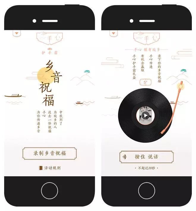 相宜本草在中秋节推出的《乡音祝福》H5,搜集了来自全国各地老乡的语音祝福,同时你也可以录制一段自己的乡音祝福并分享。