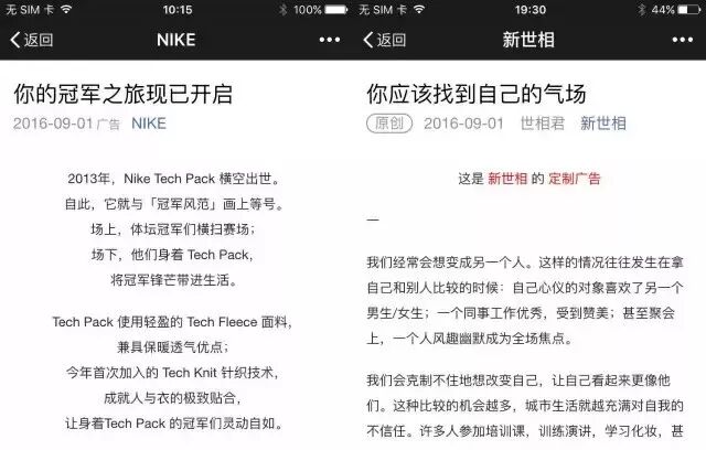 NIKE别出心裁地利用了新世相、gogoboi等一大批KOL资源为自己造势,H5推文标题根据账号的调性量身定制。