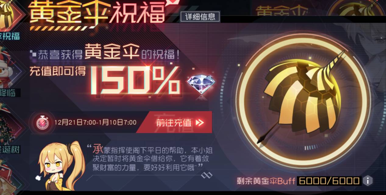一个50%的充反活动,相当于打了6.7折。不过有最高充返额度上限,最多给你返还6000晶钻就结束。