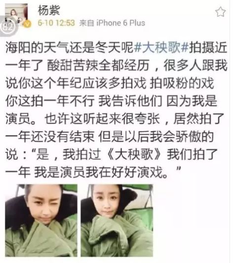 于是,从《大秧歌》之后杨紫也开始向“流量大佬”低头。