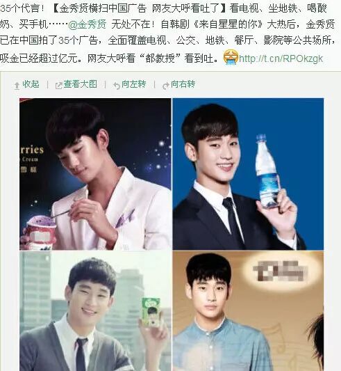 宋钟基、金秀贤在中国捞了多少金?权志龙被粉丝贴脸拍照... 日韩男星 2016-04-27 20:53:00 268 创作不易,用心坚持,欢迎请BaGua喝几杯爱心咖啡!打赏并支持本文 打赏并删除本文 戳上方“八卦什么的弱爆了” 订阅最近凭借《太阳的后裔》大火的宋钟基被曝出以40亿韩元,约合人民币2280万接下某国内的代言了有木有!据说这个价格不仅比当时金秀贤李敏镐的海外广告价高出2倍,而且还创下韩星海外代言的历史新高!欧巴,你赚大发了!听见了吗,你们的老公人生赢家模式即将开挂!而对此,宋钟基的经纪公司透露,宋钟基有望和女神章子怡合作拍摄广告,但价格暂时还不方便透露。艾玛,这长江后浪推前浪,直接把金秀贤李敏镐拍晕在沙滩上啊!你们是不是应该对金秀贤李敏镐喊一句:前夫,保重!事实上,两年之前的那个冬天,当初雪配着炸鸡和啤酒,当外星人带着爱恋踏入地球,韩剧《来自星星的你》掀起了国民追韩剧的狂潮!当年的你,不出国,不翻墙,哪哪都能看到都敏俊教授的身影!想当初,一进地铁站,满屏都是金秀贤举着恒大冰泉再换乘公交,他又会在广告牌上告诉你:搜索引擎,就用搜狗!就算走在大街上,或者是在超市里,你也会发现:原来哈密瓜优酸乳,已经携手金秀贤占领市中心!同样是优酸乳,金秀贤代言的比周杰伦代言的当时还要贵2毛呢!!艾玛放眼望去广告牌上全是欧巴,下雨天和邓紫棋在街边吃着某芙巧克力。皮肤不好了去隔壁他代言的faceshop多乐之日的面包做的超卖力主播我不能说下去了,再说真的要找广告商收费了!自从金秀贤凭借《星你》成为大众情人,靠着人气高,形象好,粉丝买账这三大优势,仅仅半年的时光,就拿下了35个广告,代言费用总金额高达1.5亿人民币,在数量和金额上,都创下了韩星代言的新高度!金秀贤的代言酬劳,是和公司二八分成,这样算下来,教授半年就有将近3000万进账呢!!这年头,投资界有句至理名言,商家说:广告费花在谁身上不是花,不如找个人气旺的,而明星经纪公司会说:拍广告找哪个商家不是拍,不如找个钱多的!呵呵,代言的世界,广告到底好不好,别看通稿,看疗效!你值得拥有!此广告位招商点击左下方“阅读原文”收听本期八卦 八卦什么的弱爆了本期八卦还将关注:电视剧《欢乐颂》收视逆袭,剧组死抠细节!Bigbang权志龙抵达北京,保镖怒推女粉丝八卦什么的弱爆了点击下方“阅读原文”收听节目↓↓↓八卦什么的弱爆了感谢马栏山“芒果声音工厂”鼎力支持全网点击量超1800万声音娱乐脱口秀主播:微博@添小乐 网编:乐小八微信号:yes09123 创作不易,用心坚持,欢迎请BaGua喝几杯爱心咖啡!打赏并支持本文 打赏并删除本文 感谢您的支持鼓励,我会继续努力的!文章地址:用户邮箱:打赏金额:USDT 请输入数字点击”去打赏“,即可进行打赏支持本文章哦 金秀贤 发表评论