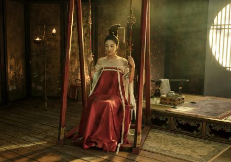 剧中她饰演的春琴姿态妖冶,阳光也照不亮的房间,坐在秋千上的美人却更显面庞绝美。