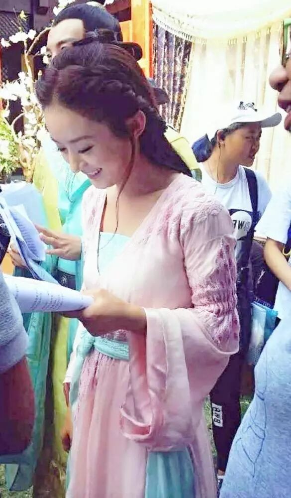 只见赵丽颖一身粉红丫鬟装依旧是美得惊人,咱也就放心啦。不过话说这是拍到那一个桥段啦?
