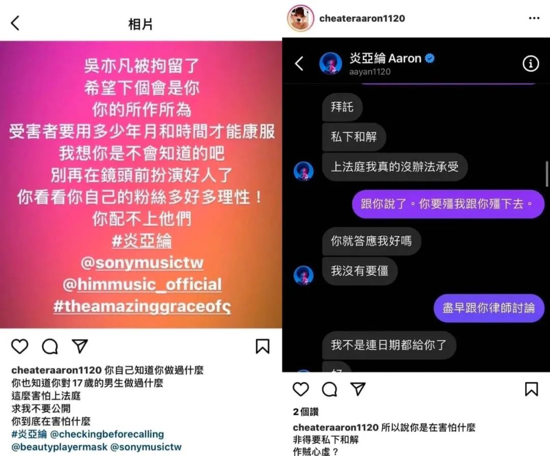 炎亚纶的公关秘诀:人不要脸,天下无敌 围剿白日梦 港台男星 2023-06-21 20:18:14 315 创作不易,用心坚持,欢迎请BaGua喝几杯爱心咖啡!打赏并支持本文 打赏并删除本文 点击上方蓝字“围剿白日梦”关注,欢迎把文章分享朋友圈。【围剿白日梦(微信号killdaydream)原创内容未经许可禁止转载,转载及合作请留言。这几天不知道是打开了什么闸门,大概是在浩浩荡荡的MeToo运动的推动下,台娱的瓜也宛如开闸泄洪一样铺天盖地地往吃瓜网友们嘴里猛炫。从周一黄子佼水鬼拉垫背一般的无差别扫射开始,就瓜瓜不重样,还随时触发一些新的连锁反应,主打一个一发不可收拾,把不少网友都搞得像瓜田里的猹,点开热搜都有点茫然不知所措(错过前瓜的可以点蓝字回顾先不说别的,对于平平无奇很久了的内娱来说,台娱这些连环大瓜着实是给端午小长假前的这几个工作日增添了不少震撼。但吃瓜归吃瓜,涌入大众视野的大部分瓜都是越吃越觉得背后发凉的类型,比如今天承包热搜榜的“炎亚纶事件”。没错,又又又又是炎亚纶,这已经是他不知道第多少次塌房了,而且他这回还又当众塌了个大的——几年前跟未成年(男生)(疑似强行)发生关系(放眼望去要素过多…先说说他这个瓜的前情提要吧。昨天有网友在社交媒体上发文说炎亚纶“对17岁男生做过什么”,还直指炎亚纶曾因为心虚要求私下和解,不想闹上法庭。就在吃瓜网友们还在观望中的时候,有一位叫邱耀乐的网红博主发了长文锤炎亚纶,表示自己五年前曾和炎亚纶交往过,但是炎亚纶在他16岁那会儿留给他的伤痛和不堪的回忆一直伴随他至今。斯文给大家简要总结一下知识点啊,邱耀乐在小作文里列举的炎亚纶的罪状包括但不限于:1. 交往期间偷拍私密视频。他俩第一次doi的时候炎亚纶就想拍小视频但被邱耀乐严肃拒绝,当时炎亚纶也和他拉勾承诺表示不会拍。但是之后邱耀乐发现炎亚纶还是偷拍了(还是年纪小啊,会信跟男人拉勾这种口头承诺会有用…2. 经常不顾他的感受强行进入。比如在他睡着的时候,emmm…3. 同时交往多人,脚踏多只船。邱耀乐曾经接到过其他自称是炎亚纶正派男友的质问电话,炎亚纶当时的解释是说那些都是神经病。4. 他俩的私密视频外泄,炎亚纶装傻不承认。当时炎亚纶表示他也不知道视频是怎么流出去的,只说会处理好。结果事情被大肆报道,留邱耀乐一个人独自面对舆论压力,而炎亚纶只给了他几万台币的律师费和生活费打发他。邱耀乐因此很久不敢出门,还被迫休学(网传邱耀乐当时花了七年时间才完成高中学业5. 借黑道之名威胁邱耀乐,堵他的嘴。邱耀乐当时听说,炎亚纶有放话说如果他出来选择爆料的话,就找黑道解决他的话,这让当时的邱耀乐非常不知所措,内心也很矛盾。因为一直很崇拜炎亚纶且爱过的缘故,在当年A男B男C男连环锤炎亚纶的时候,他都没有站出来锤炎亚纶,但他的乖巧听话换来的是炎亚纶的抛弃。现在五年过去,邱耀乐看到近期的新闻又想起这些事,怕炎亚纶还在利用他的明星光环继续做伤害人的事,于是终于决定站出来袒露心声。这么一篇信息量巨大的小作文一出,可以说是给炎亚纶本就已经摇摇欲坠的口碑一记暴击,不管是台娱还是内娱都一片哗然。虽然炎亚纶的性取向早就不是什么秘密,喜欢同性本身也没什么错,但是他不仅搞16岁的未成年,还又是用强又是偷拍的,还因为视频外泄害得人家小男生声名狼藉,这么多年都走不出阴影…怎么看都觉得炎亚纶罪孽深重吧??再浅浅补充一下2018年那个“A男B男C男”的瓜,估计不少网友还有印象,毕竟不管放在当时还是现在都是非常炸裂的水平,炎亚纶“翘屁嫩男”的梗就是出自当时。因为瓜太长太抓马且配图十分辣眼睛,斯文就不放具体的图了,感兴趣的网友可以自行搜索相关关键词(友情预警,真的蛮辣眼睛的,慎搜简单来说就是炎亚纶发生在2016-2018年期间的一些混乱男男情史被当事人曝出来了,说他同时劈腿三男。原本炎亚纶的经纪公司辟谣说只有两个人,B男和C男是同一个,结果B男马上接受采访且推出了炎亚纶的恋爱时间轴,表示是有三个人,但时间线不重叠。一直觉得自己才是正宫的A男听了觉得非常不OK,于是就出来反撕B男,说他俩的时间线是重叠的…总之就是公开上演了一出多男为爱扯头花的抓马大戏,最后是以炎亚纶的道歉告终。相比之前这几位,这次出来锤炎亚纶的邱耀乐看起来还要更惨一些。然而更让网友们没想到的是,邱耀乐那篇控诉炎亚纶的小作文只是这场抓马男男大戏的开始,因为炎亚纶很快就发文回应了,也回了一篇(看似真挚的)道歉小作文。他表示他对待感情确实有一些扭曲且不成熟的做法,没想到当时的自己疏于沟通给邱耀乐带来这么大的伤害。现在他很感谢邱耀乐愿意讲出来,他也很期望能当面道歉并进行弥补。至于邱耀乐控诉他的那些点,他的解释是:私密视频不是他主动外流的,大概是修手机的时候流出去的(好老的梗啊…而关于他这些年混乱的感情生活,他表示都是因为他是个恋爱脑,处理不好个人感情(恋爱脑可不乐意背这锅虽然前面说无法接受采访,但邱耀乐随后还是发布了一则媒体发布会的预告,估计是眼看着事已至此炎亚纶还在甩锅,打算站出来把事情一次性说清楚。对于吃瓜群众来说,这种当事人出面的直球对决也是乐趣多多,完全不必担心会让狗仔那些“中间商”赚差价。这场发布