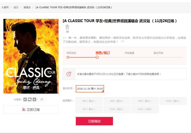 一键购买“张学友·武网”套票,即可观看2016“A CLASSIC TOUR ”学友·经典武汉演唱会,还能观看 2017武汉网球公开赛的顶级网球赛事啦!