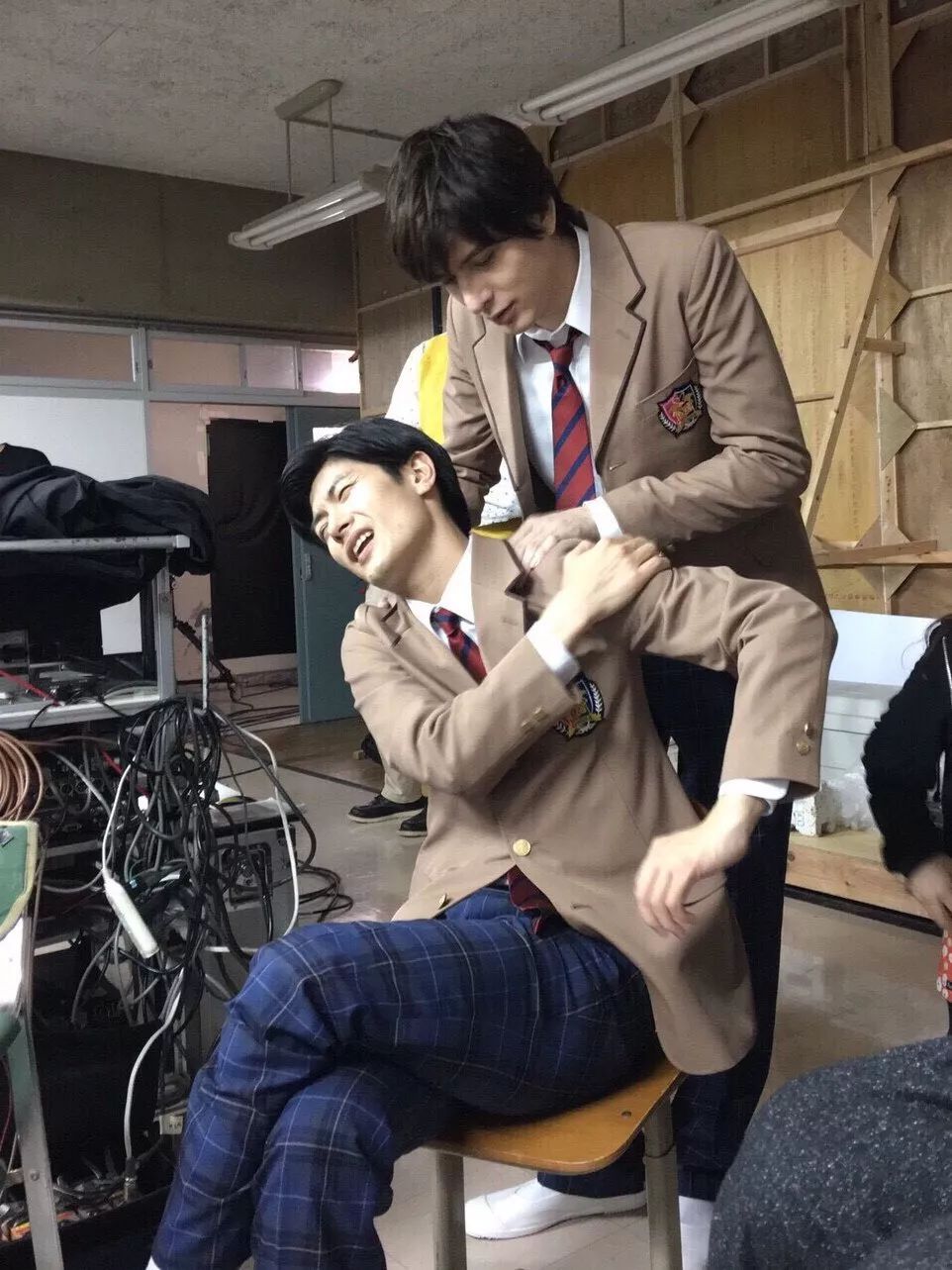 22岁的新田真剑佑是“雄霸”千叶真一的儿子,出演过《花牌情缘》、《致命之吻》等作品,拥有精致的五官、帅气的容颜的他在这两年收获了极高的人气,他与圈内众多男星都保持很不错的关系,一样的背后拥抱给过Arashi的松本润