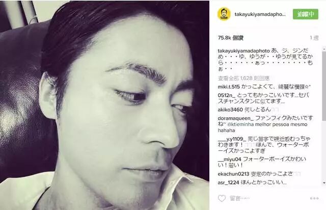而看到"公开偷吃照"之后的山田孝之选择了回击,贴上自拍照写着「啊...仁、仁不可以...优他会看...啊...讨厌...」(这样的文字是不是有点在看H小说的感觉~)