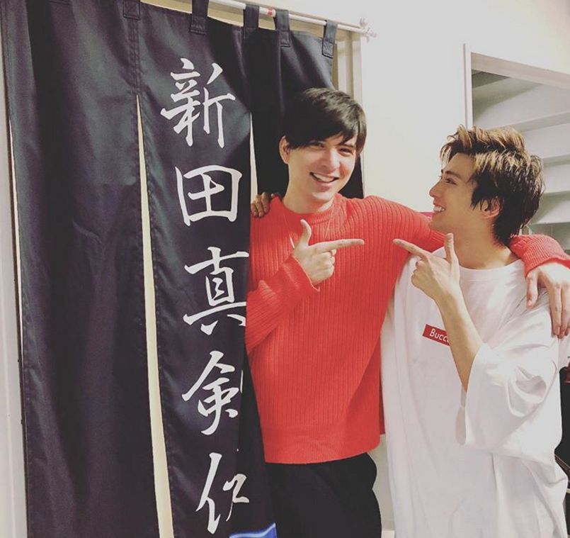 他们在Instagram上晒出同框照片,新田真剑佑从后面紧紧抱住了城田优,做出了比V的手势