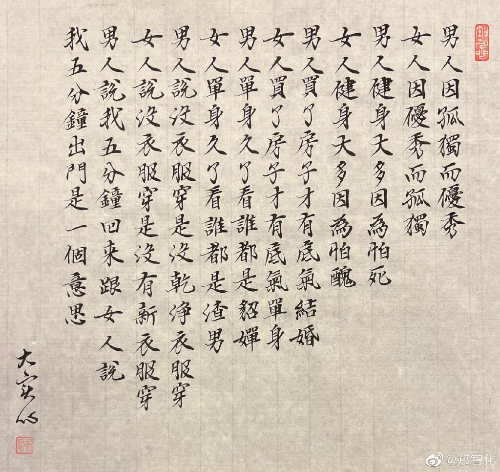你以为他变佛系不再那么锋芒毕露了吗,可是他也会在书法作品里表达一些有趣的看法: