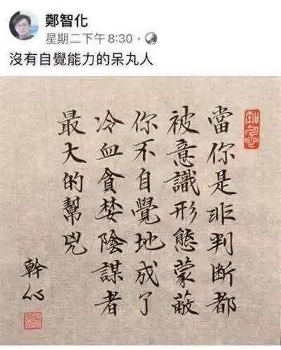 郑智化最劲爆的一首歌,绝对要数《大国民》,基本上就是把台湾社会和台湾政府喷了个狗血淋头。现在这首歌在我们这边的各大音乐平台都下架了,不过我侥幸找到一个MV视频,大家赶紧看!