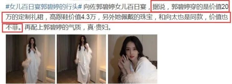 加上郭碧婷现场一身行头被扒,不少人都夸向太宠媳妇,简直把小郭童鞋打扮成了贵妇。