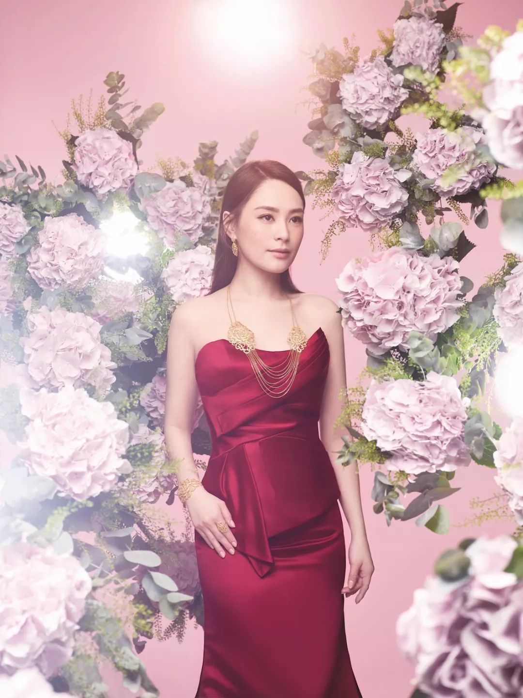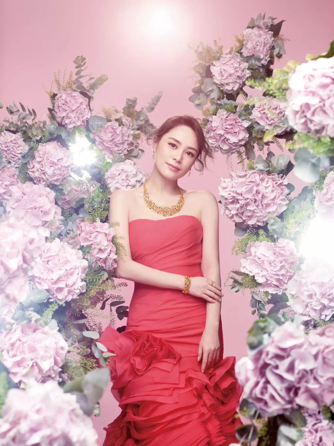 拍摄过程中,阿娇不时流露出甜蜜神情,她提到:“当你遇上对的人,幸福就会不知不觉间溜进你的生命当中。就如英皇珠宝的中式足金婚嫁系列一样,把家人的期待与祝福寄托在金饰之中,让待嫁的新娘满载幸福感。我很感谢亲朋好友为我送上的祝福,才令我有如此难忘的婚礼。”多款足金婚嫁珠宝系列中,阿娇最爱不释手的是幸福花嫁系列:“幸福花嫁系列把传统金饰幻化成迷人的花卉,配衬起各款中式裙挂,令新娘子更显优雅脱俗。”