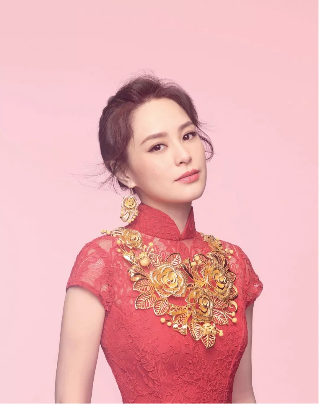 为了向每一对新人送上最真挚的祝福,英皇珠宝特别邀请准新娘钟欣潼(阿娇)拍摄一组“中式足金婚嫁珠宝系列”广告。阿娇在宣传照中,时刻散发甜蜜幸福的笑容,她的时尚花嫁造型婉约动人,完美演绎中式足金婚嫁珠宝配搭出的时尚气质造型。