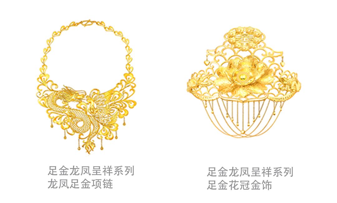 足金金饰在婚嫁仪式中一直担当重要的角色:满载着长辈对新人的祝福,祝愿一对新人白头偕老,情比金坚之外,金饰在中国传统中亦是代代相传的瑰宝。