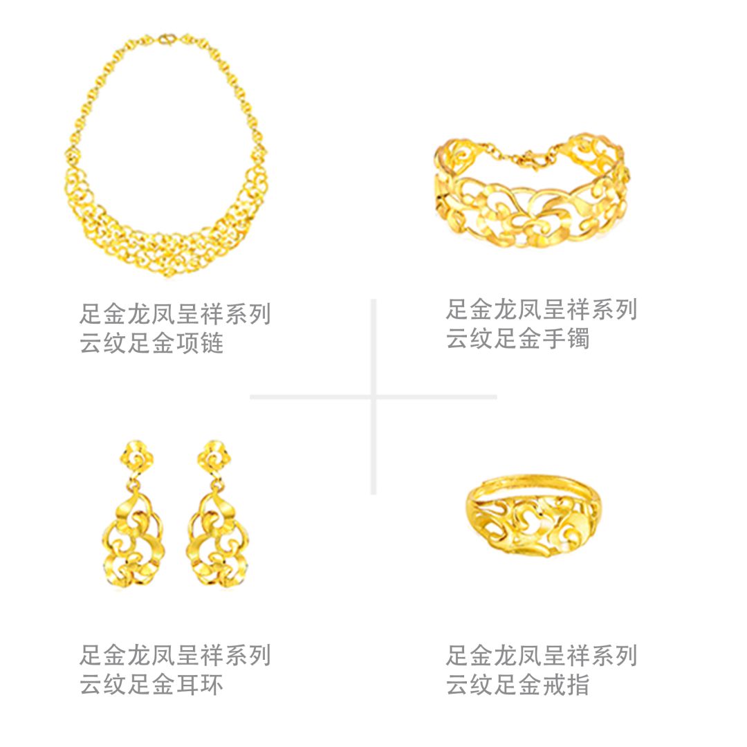 龙凤呈祥系列采用中国传统文化融入设计中,令此足金婚嫁系列更能展现继承传统的精髓,寄予长辈满满的祝福承传给下一代。此系列以寓意吉祥的龙凤及云纹为设计元素,糅合工匠精湛的手艺,打造出精致细腻又高雅大方的足金首饰。