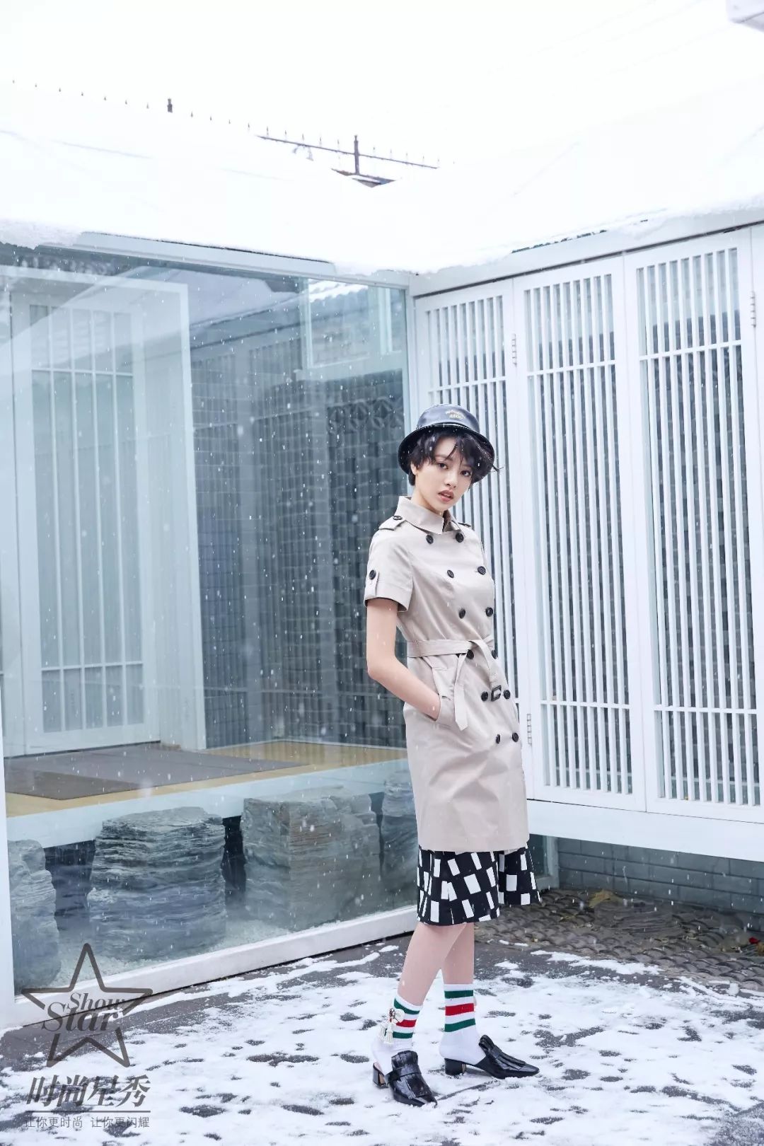 张艺上身穿克劳西风衣外套,