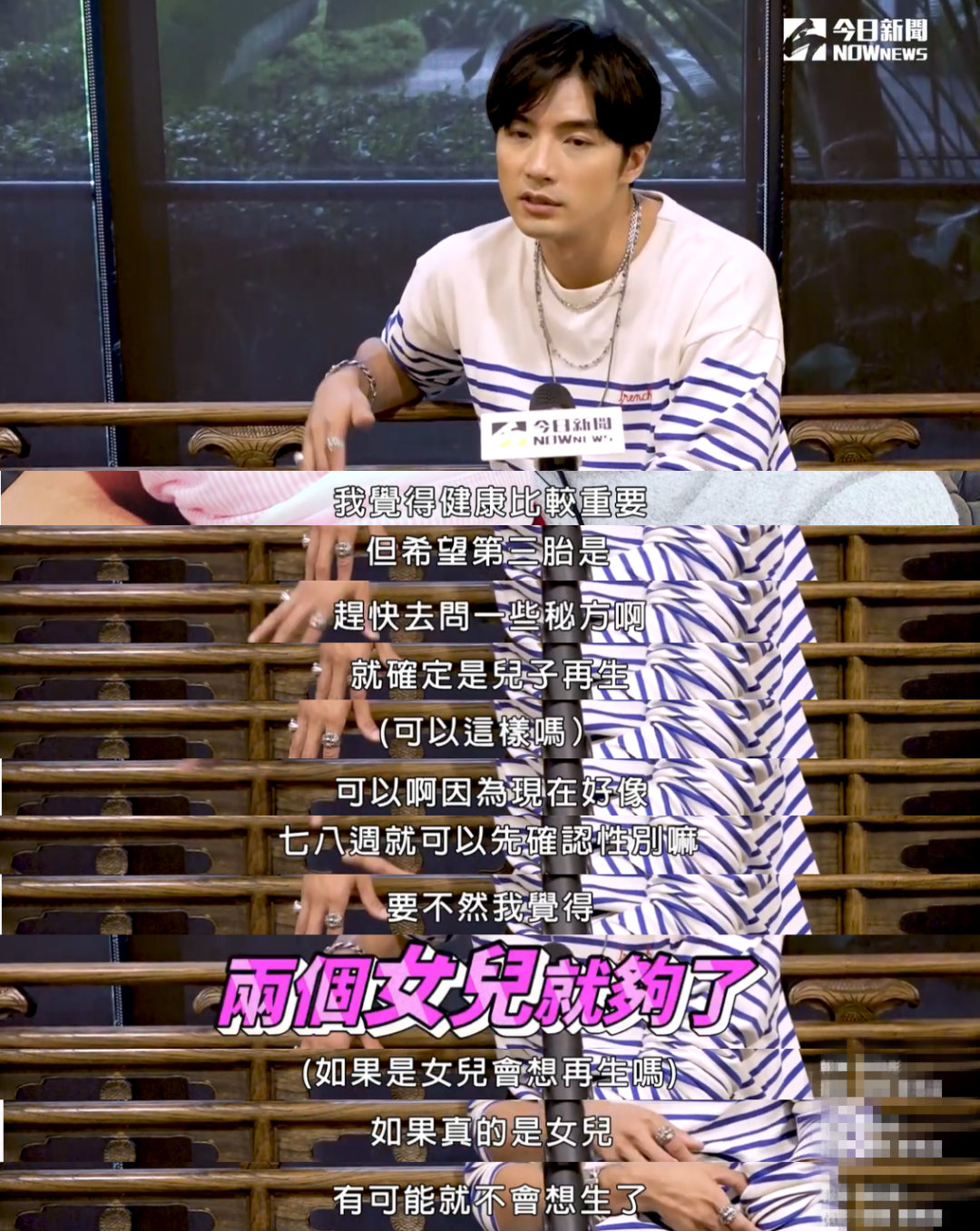 结果记者听到后不禁质疑“可以这样吗”,贺军翔随即答道:“可以啊,因为现在好像七八周就可以确认性别嘛,要不然我觉得两个女儿就够了,如果真的是女儿,有可能就不会想生了。”