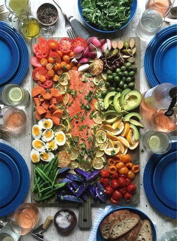 沙拉,大部分以生的蔬菜(比如菊苣、芝麻菜、混合沙拉菜、羽衣甘蓝、长叶莴苣等)为底,搭配自己喜欢的谷物或豆类(比如熟小麦、熟通心粉、熟豆类、熟藜麦、熟米等),再配上三文鱼、鸡蛋、鸡肉、意面、水果等等做成的冷或温的菜肴。