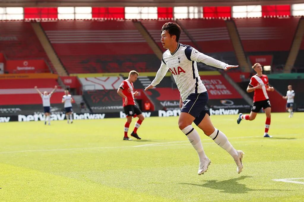 第一球:半场补时阶段,孙兴慜接到凯恩的传中,单刀抽射破门