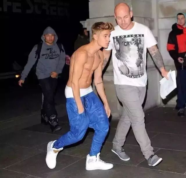 其实这种把裤子下拉露出内裤的穿法以盛行多年