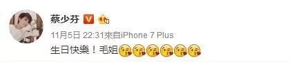 这么甜蜜蜜的动态也是感染了不少网友,都纷纷留言称”祝福毛毛姐永远18岁“。