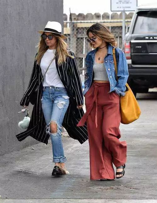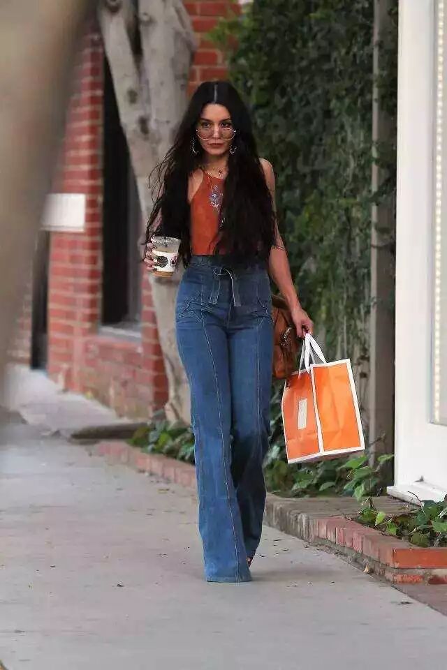 Vanessa穿阔腿裤或喇叭裤的时候,全身的颜色很少超过三个颜色,看起来干净利落,所以懂得化繁为简非常的重要。而且穿阔腿裤和喇叭裤不但可以显瘦显高,气场更是直升。▼